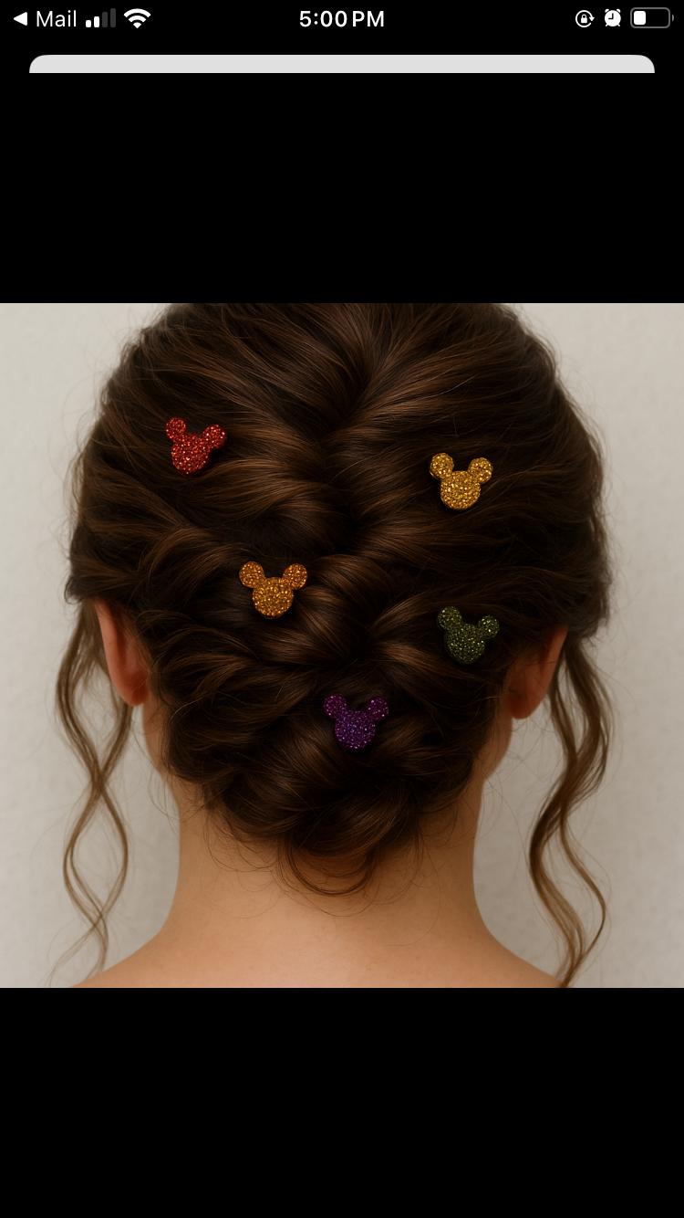 PLEASE NOTE In pictures of up do’s the Mickey hair pins look large but are only 1/2” in size. Ty