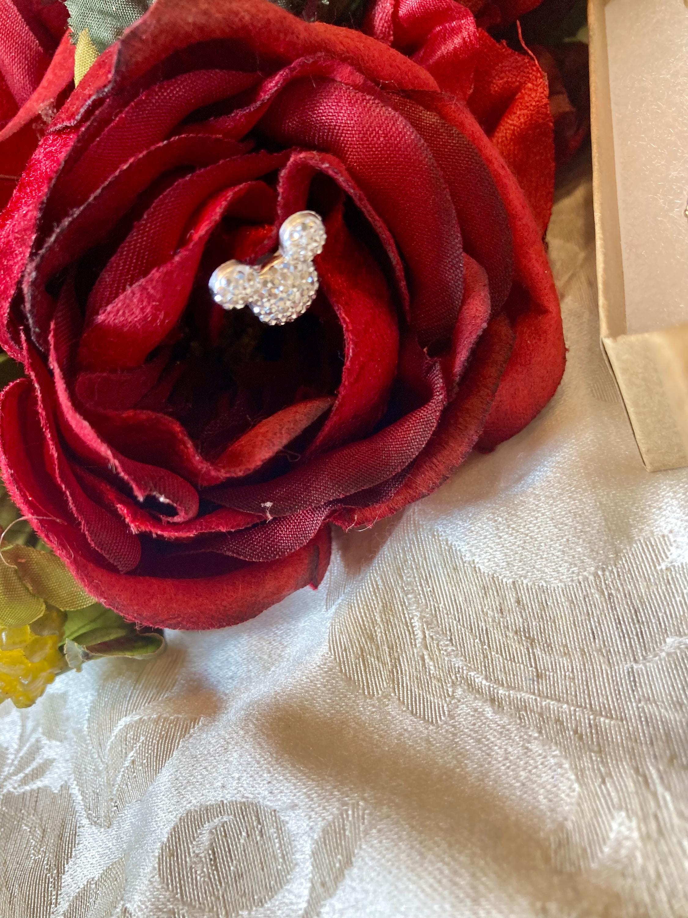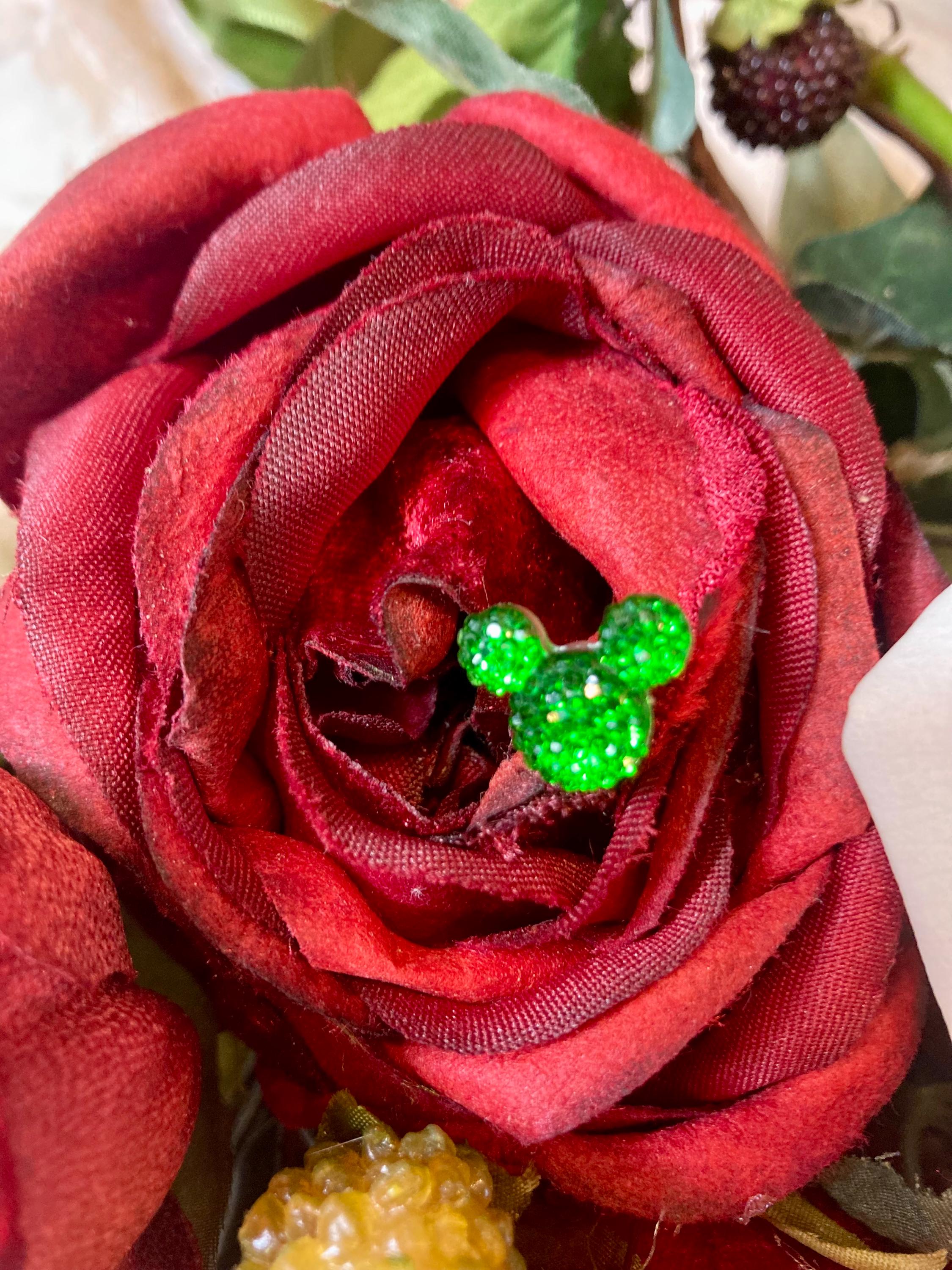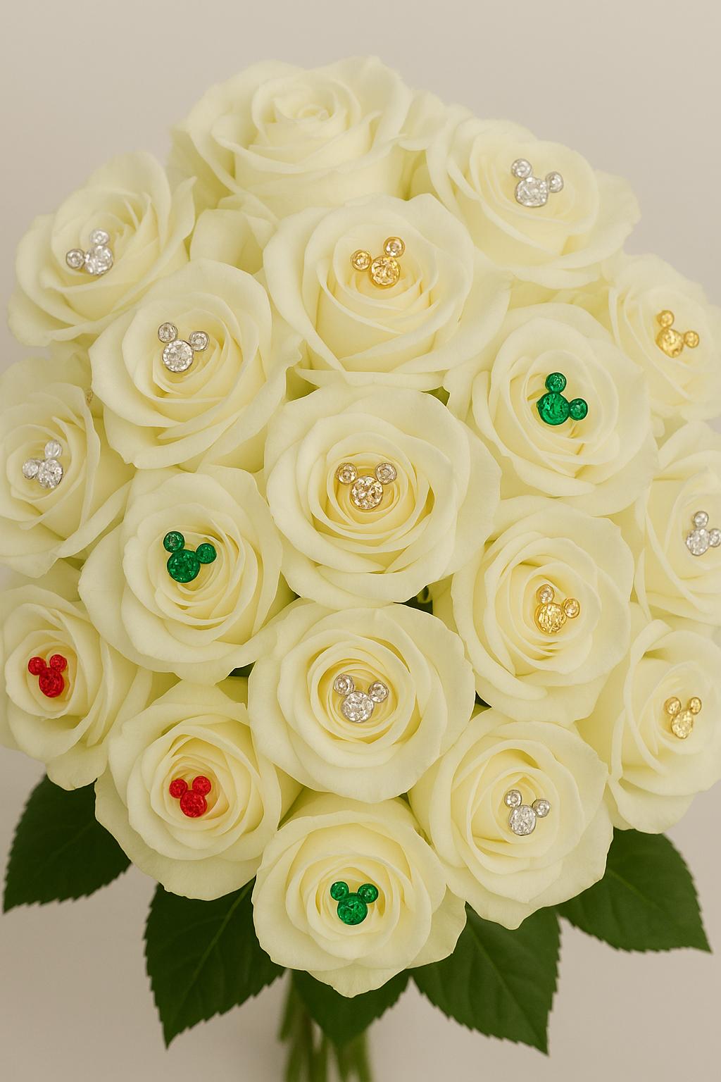 These sparkling Mickey flower charm pins twinkle like Christmas wishes com true - perfect for nestling into fresh or silk flowers.
