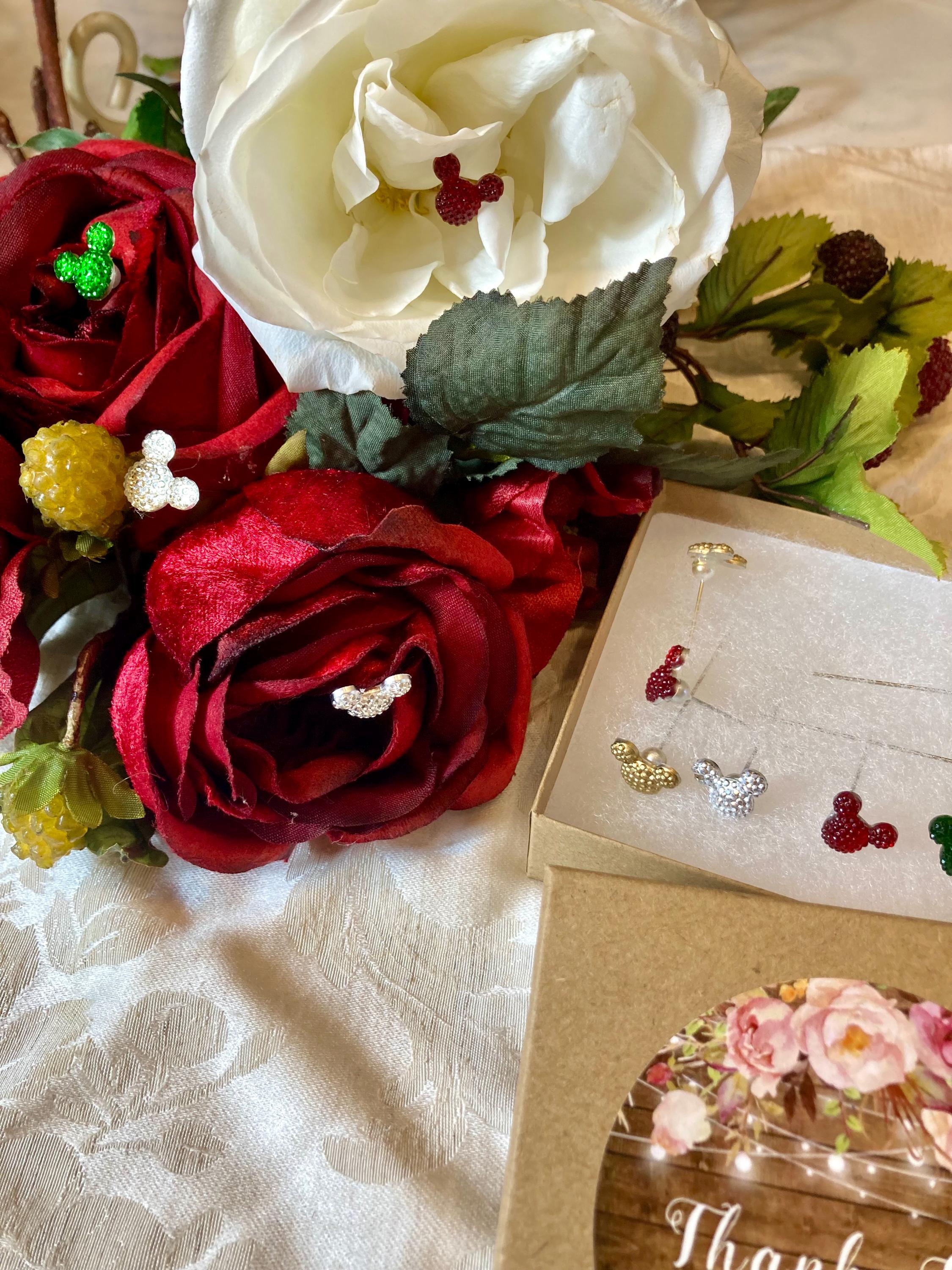12pc. MICKEY FLOWER PINS, Christmas Mickey Flower Pin, Disney Christmas Wedding Flower Pin, Holiday Mickey Pins, Disney Lover Christmas Gift