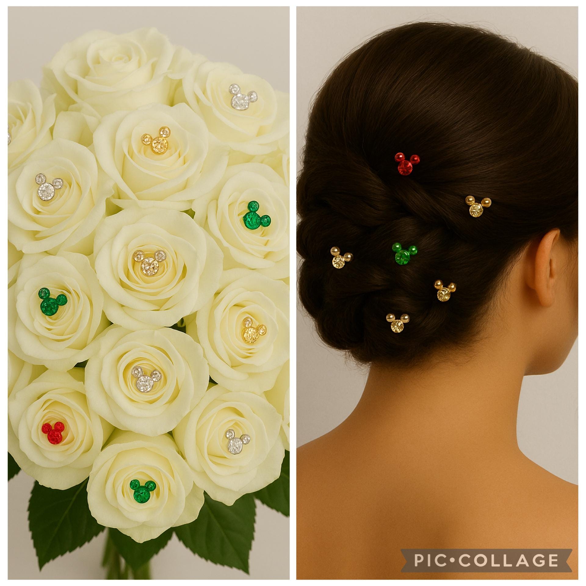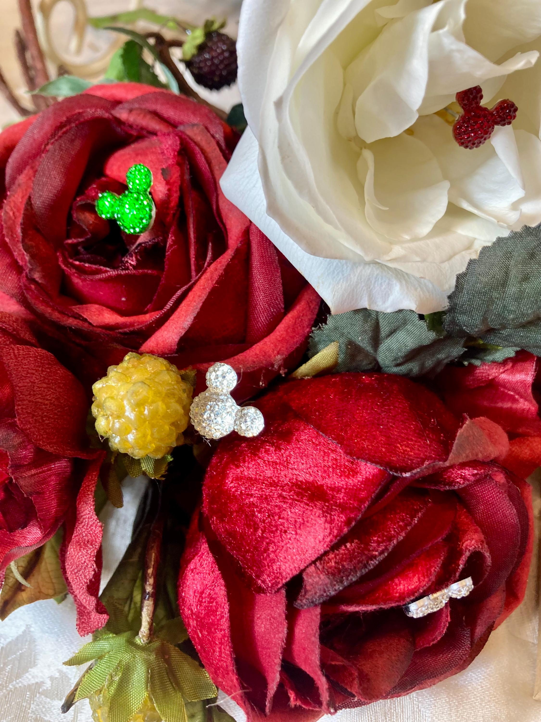 HIDDEN MICKEY FLOWER PINS, CHRISTMAS FLOWER BOUQUET, CHRISTMAS MICKEY PINS, CHRISTMAS WEDDING, DISNEY CHRISTMAS WEDDING BOUQUET, MICKEY CHRISTMAS