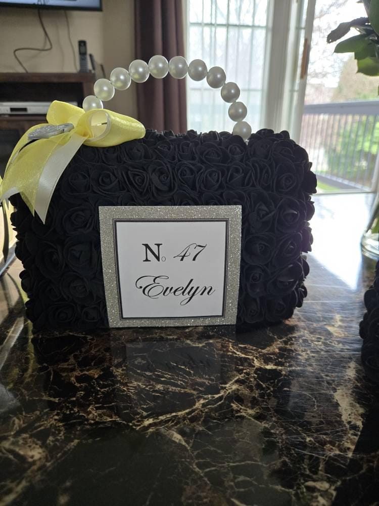 Flower Purse, Purse Centerpiece, Parisian Party Decorations, Paris Theme Birthday, Paris Theme Sweet 16, Paris Theme Bridal Shower, Fashion Centerpieces, 60th Birthday Centerpiece, Paris Theme 40th Birthday Centerpiece, 50th Birthday Decorations, 60th Birthday Centerpiece, 30th Birthday Centerpiece